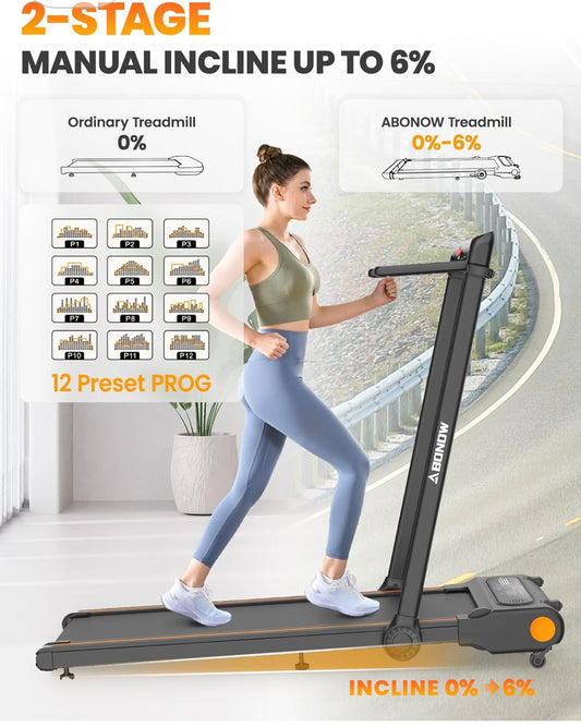 Abonow Walking Pad, Under Desk Treadmill with Incline for Home Office 2.5HP Portable Walking Treadmill with 280 Lbs Weight Capacity Walking Machine, Remote Control, LED Display